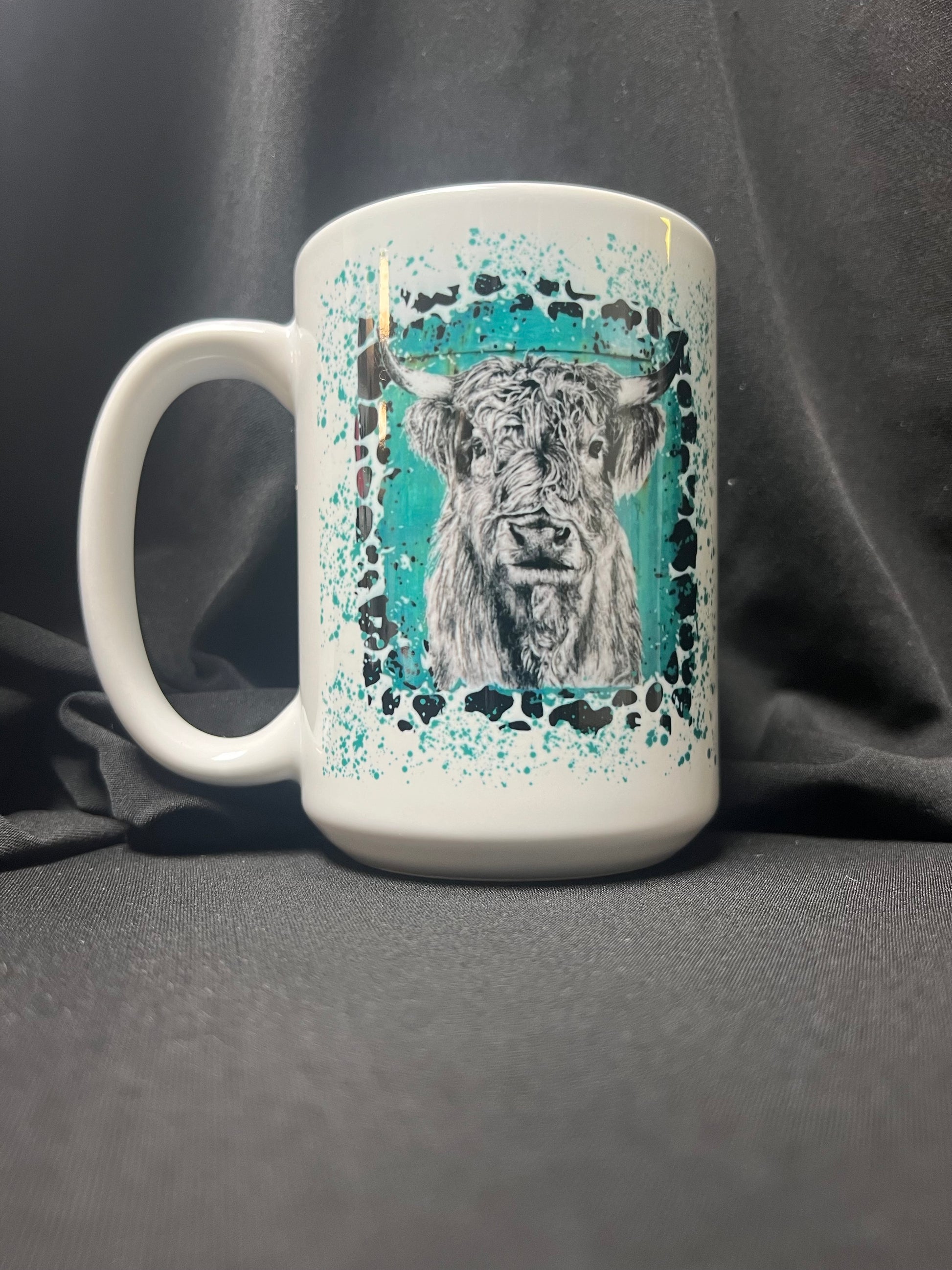 15 OZ CERAMIC GLASS MUG - Highland Cow