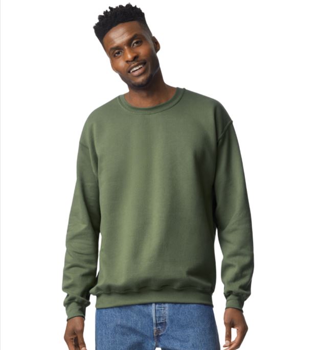 The Gildan Adult Heavy Blend Fleece Crew offers ultimate comfort and durability. Crafted from a 50/50 blend of cotton and polyester, this 8 oz. fleece crew features a tear-away label, pill-resistant air jet yarn, and double-needle stitching.
