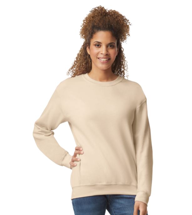 The Gildan Adult Heavy Blend Fleece Crew offers ultimate comfort and durability. Crafted from a 50/50 blend of cotton and polyester, this 8 oz. fleece crew features a tear-away label, pill-resistant air jet yarn, and double-needle stitching.