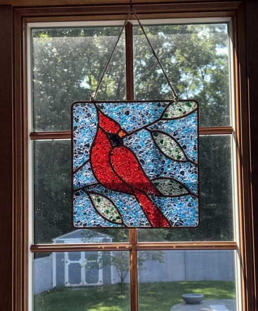 12 x 12 Sun Catcher made with wood, crushed glass and resin.