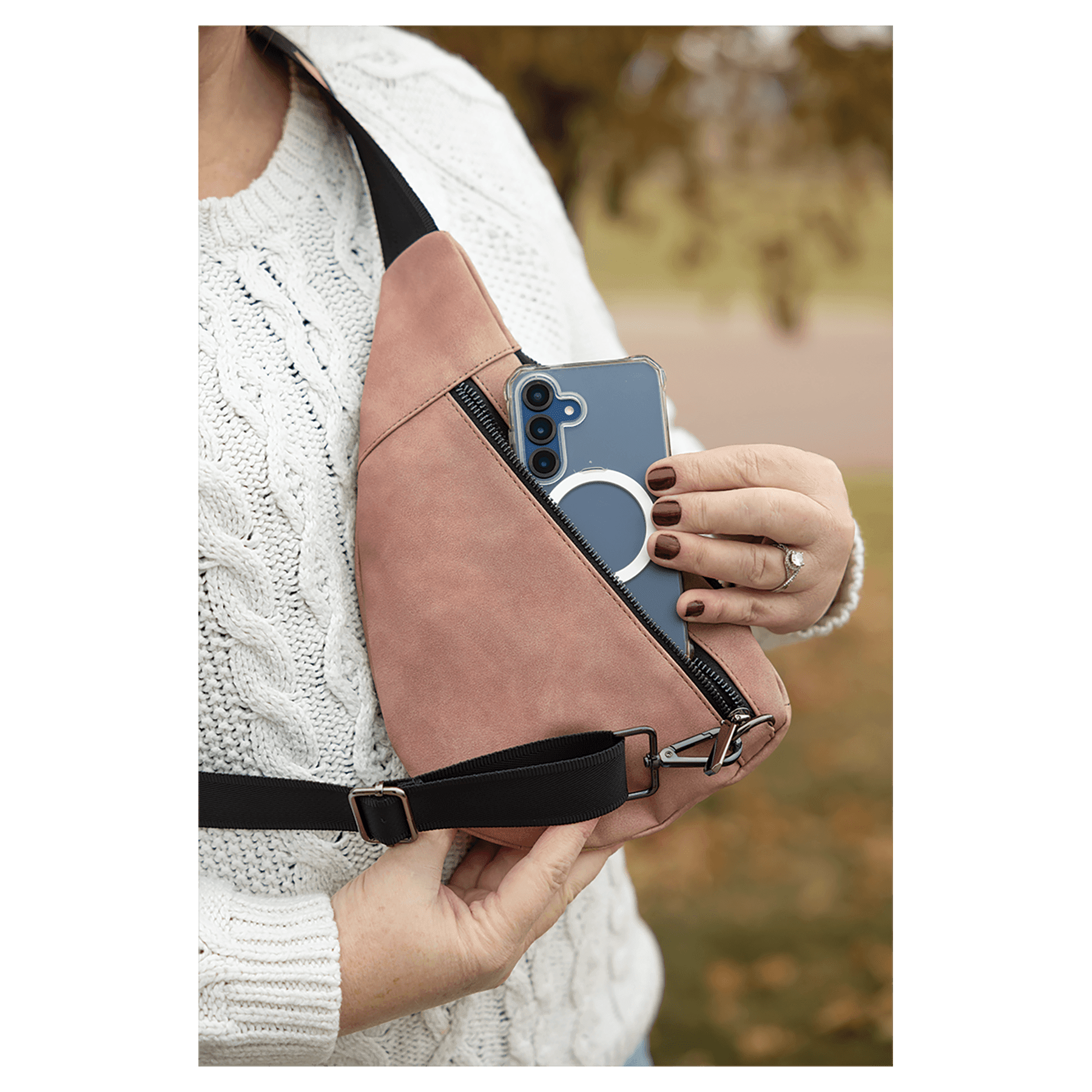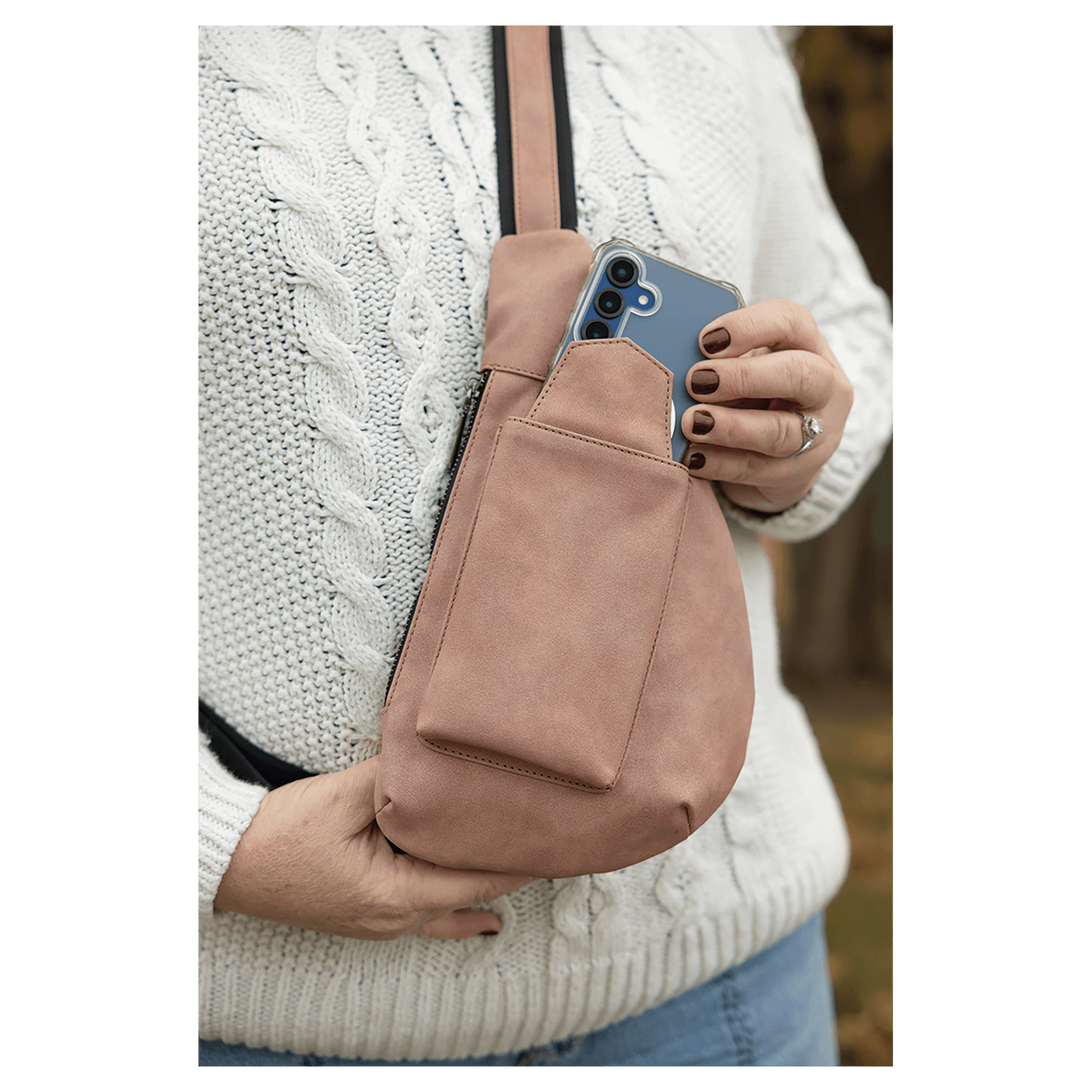 Leatherette Crescent Bag, Creekside Collection