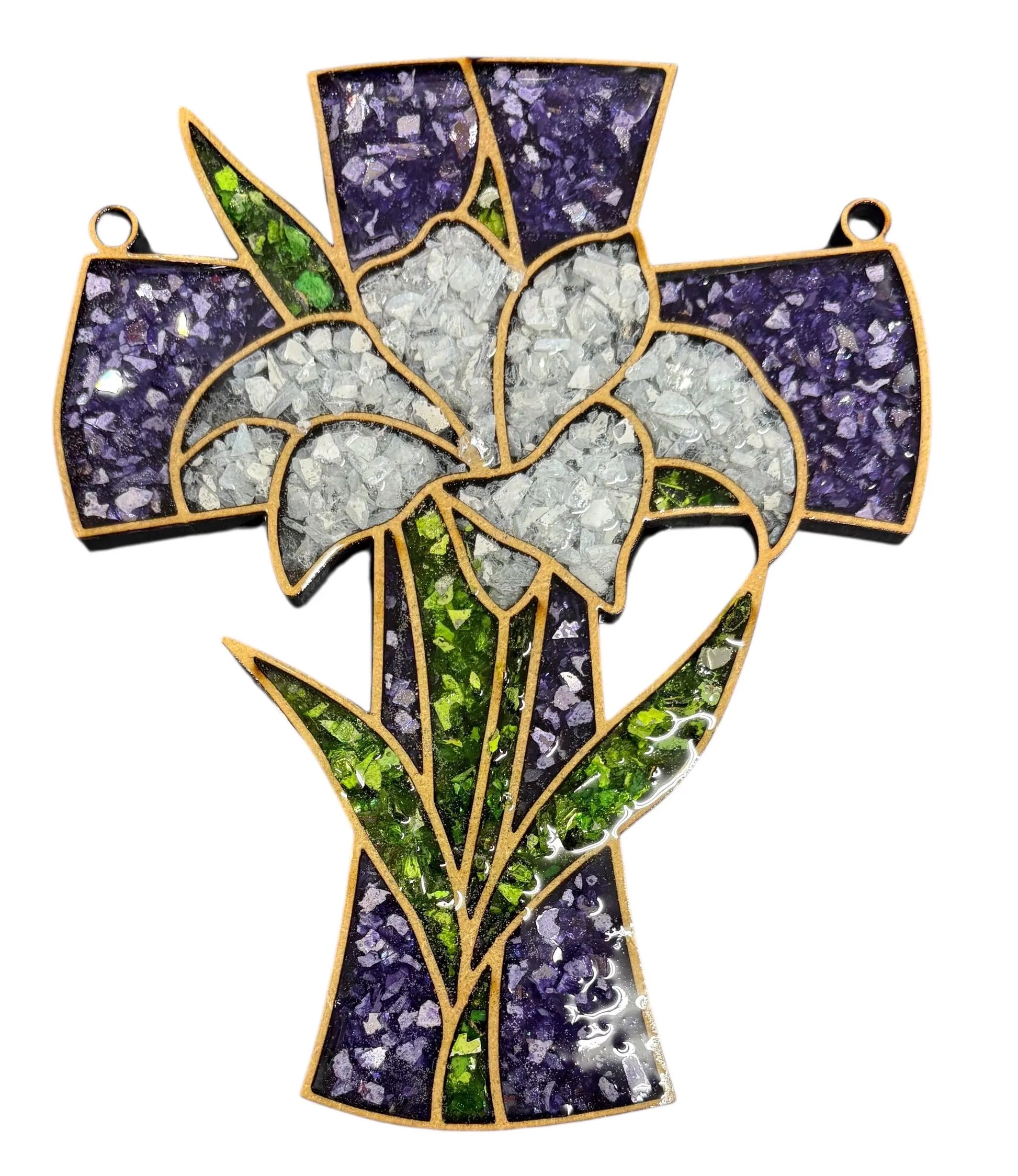 Easter Lily & Cross Crushed Glass Sun Catcher