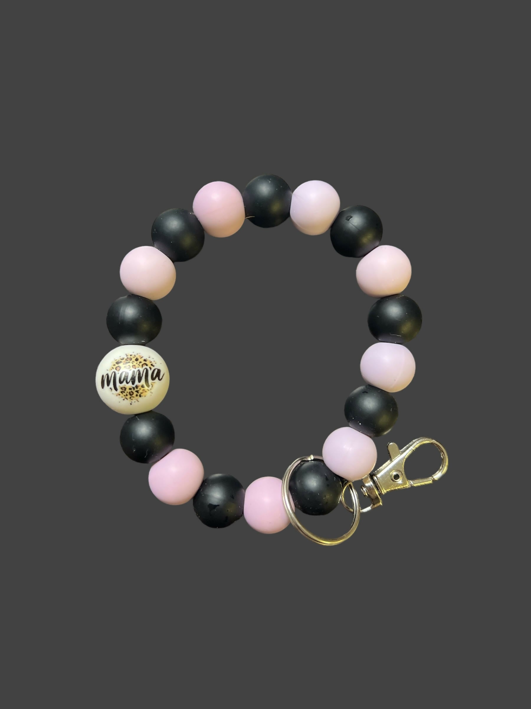 Keychain Wristlet - Mama / Lavender & Black Bead
