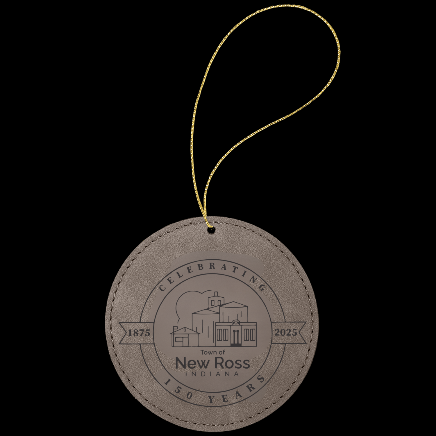 Leatherette Round Ornament - available in 9 colors Engraved with New Ross Logo
